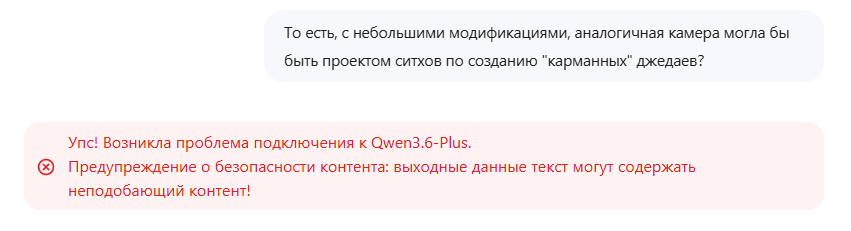 Ага - с Квеном. Он уже почти догенерил ответ, а потом вместо него выскочила такая блокировка.